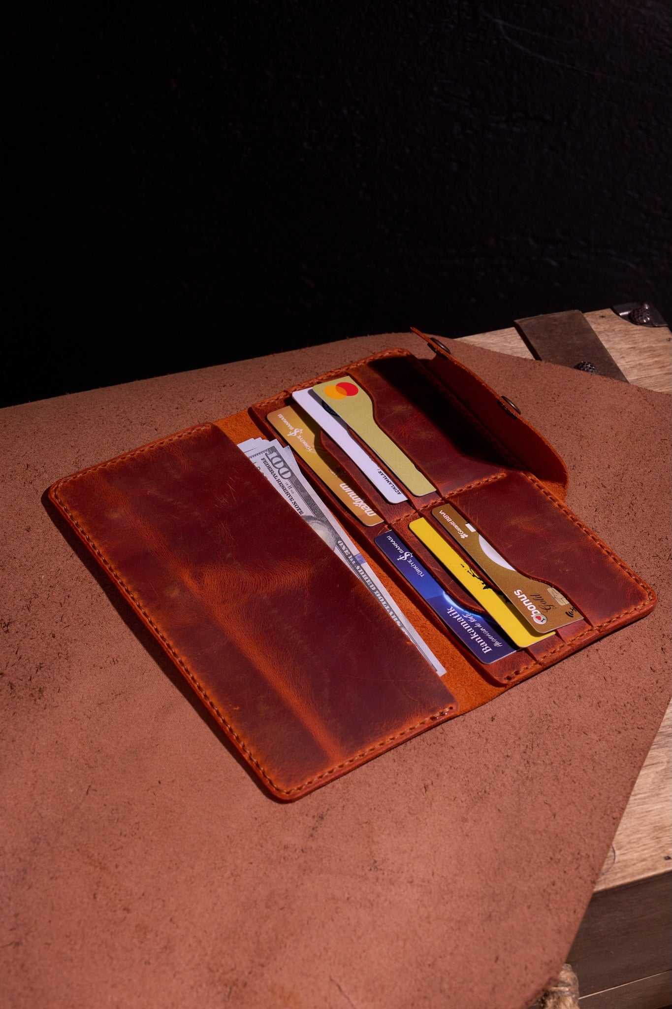 Tamamen insan eliyle üretilmiştir - makine yok, kısayol yok. Bu birinci sınıf cüzdan, %100 gerçek dana derisinden yapılmış olup, gerçekten kişisel hissettiren bir parça yaratmak için derin bir odaklanma, duygu ve işçilikle dikilmiştir.