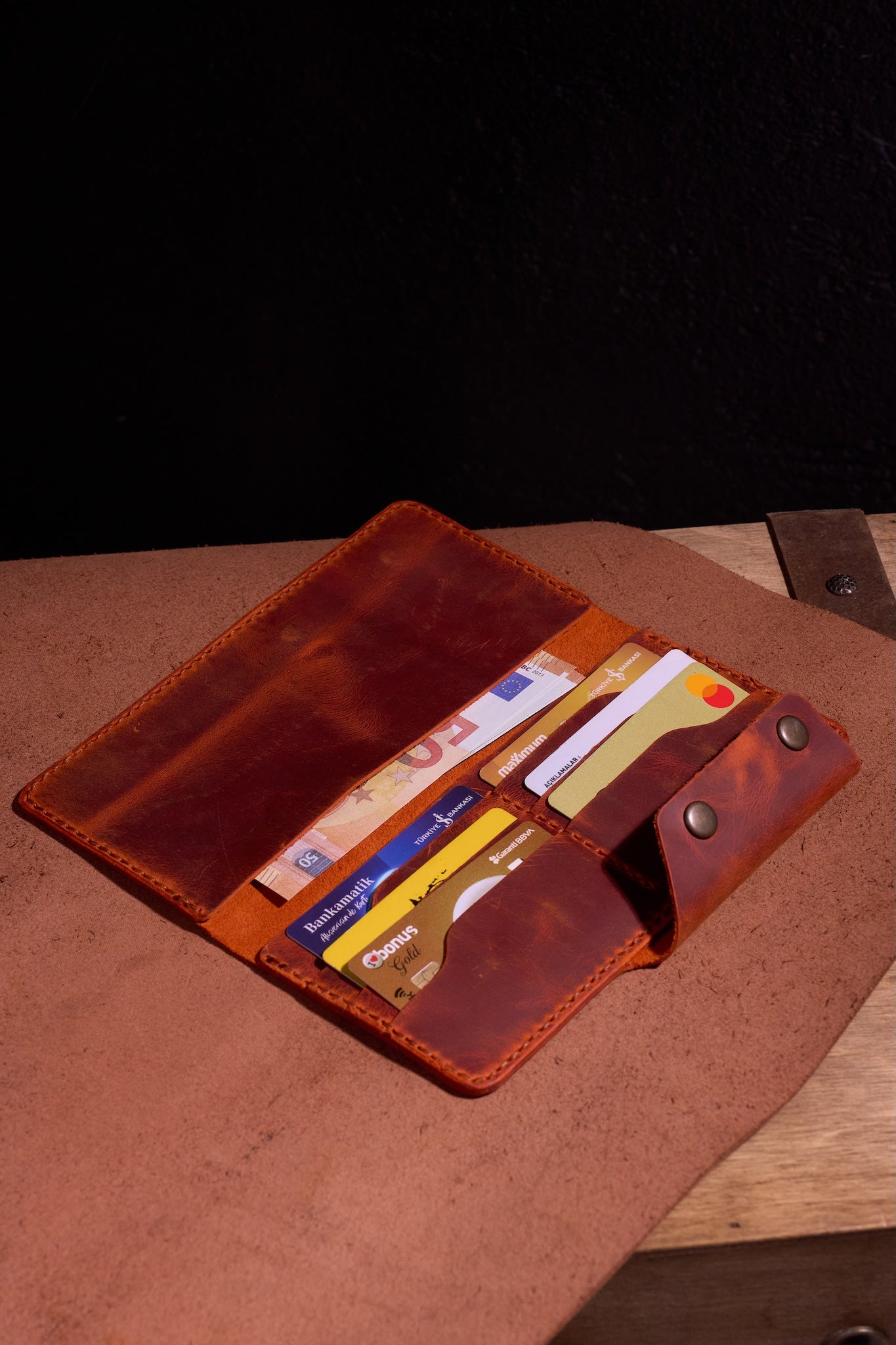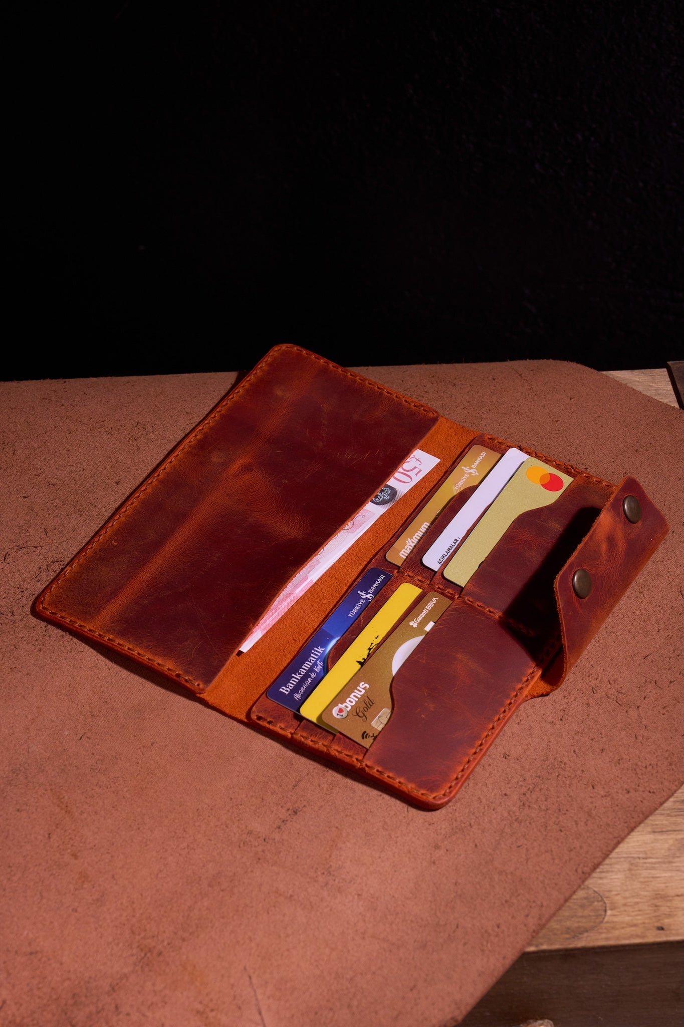 Bu cüzdan sadece kart taşımakla kalmaz, bir zanaatkârın zamanını, sabrını ve duygusunu da taşır. Sadece bir aksesuar satın almıyorsunuz; karakteri, varlığı ve kalıcı değeri olan el yapımı bir parçaya sahip oluyorsunuz.
