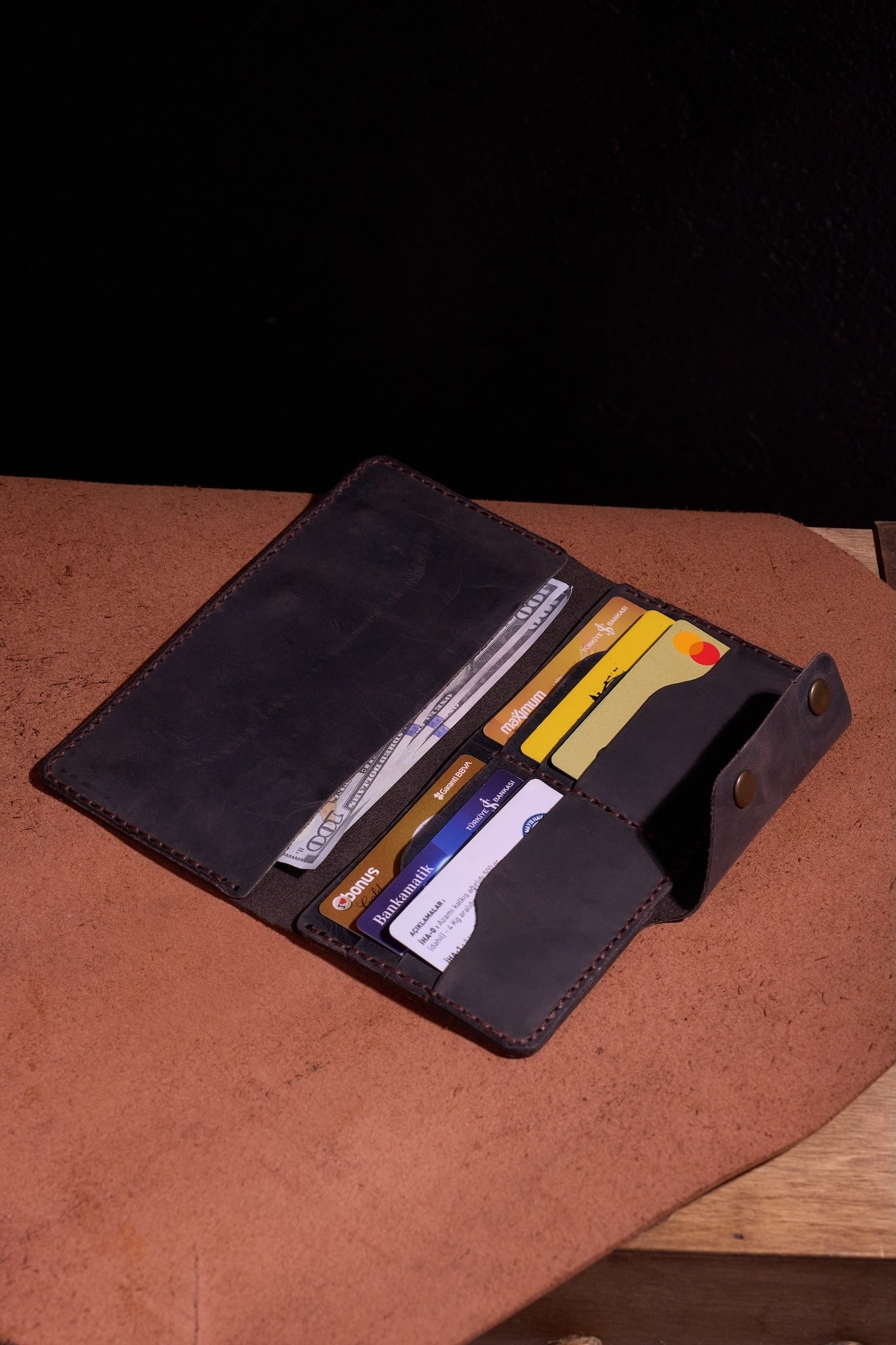 Tamamen insan eliyle üretilmiştir - makine yok, kısayol yok. Bu birinci sınıf cüzdan, %100 gerçek dana derisinden yapılmış olup, gerçekten kişisel hissettiren bir parça yaratmak için derin bir odaklanma, duygu ve işçilikle dikilmiştir.