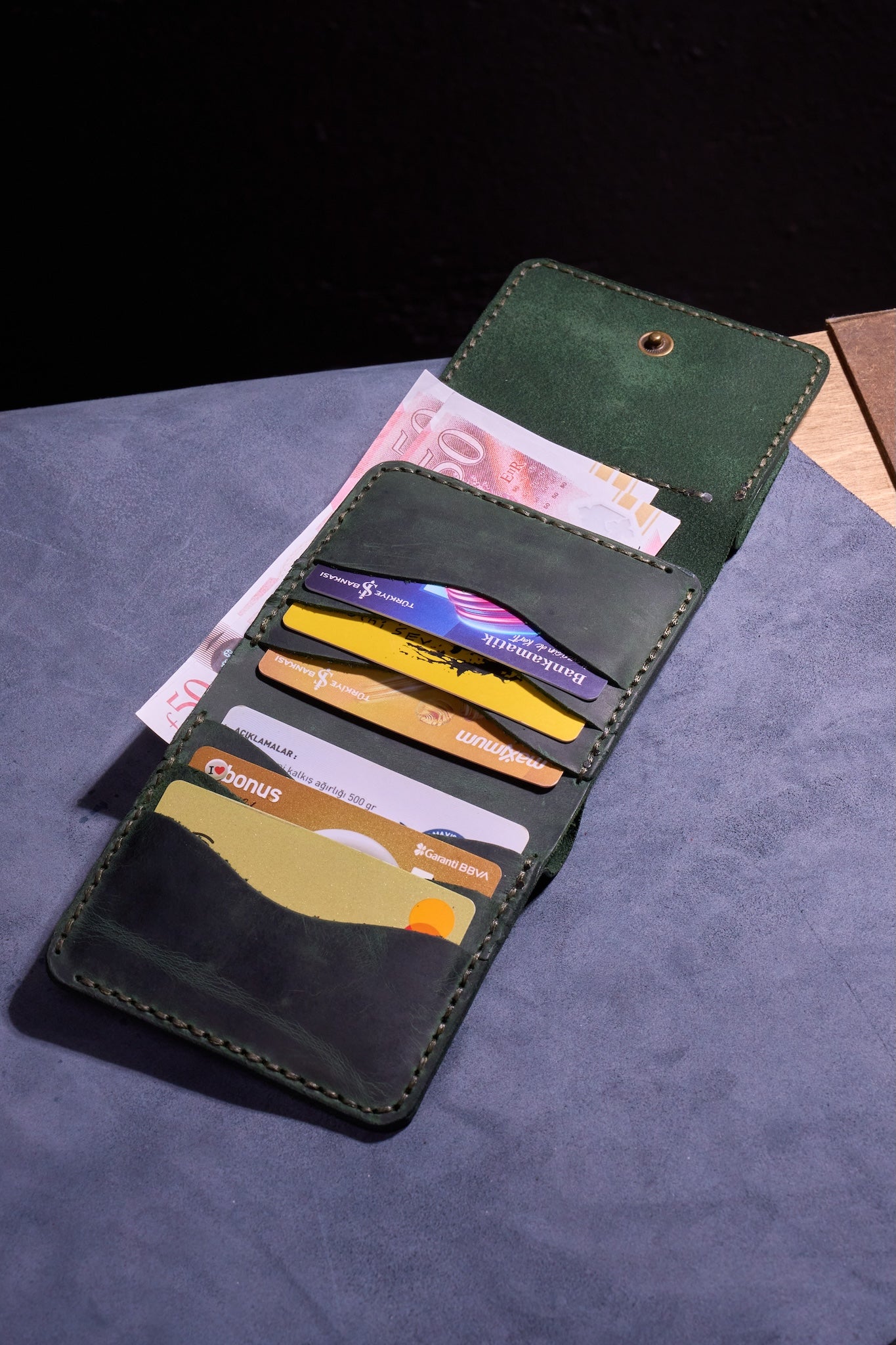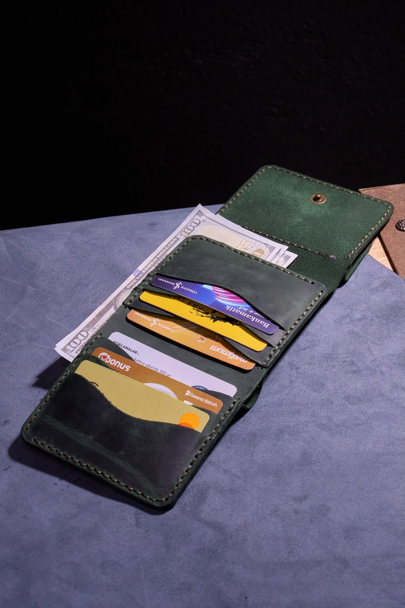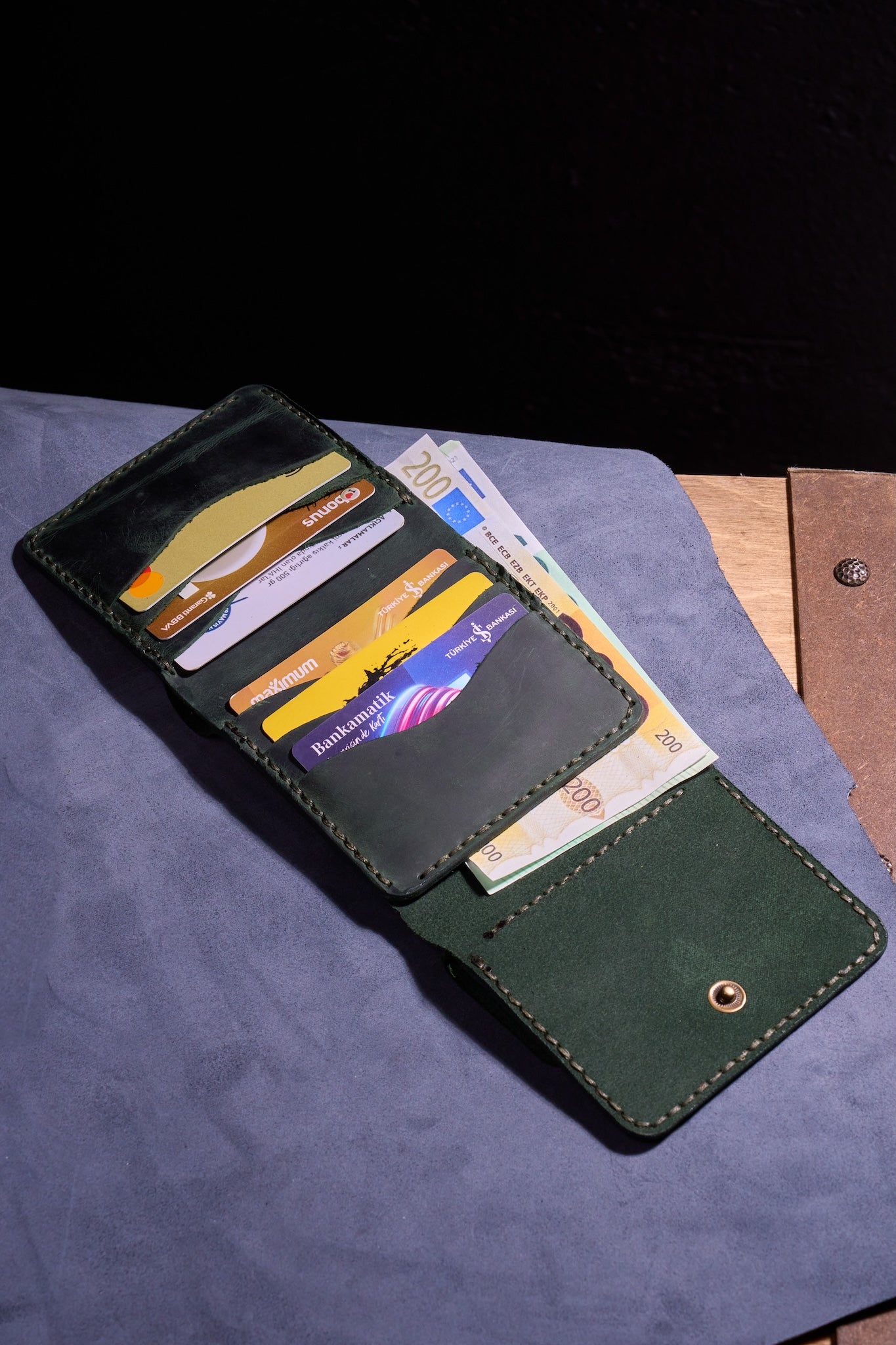 El Yapımı ve Tek Tek Üretilmiş – Her cüzdan özenle ve hassasiyetle elle kesilir, şekillendirilir ve dikilir.