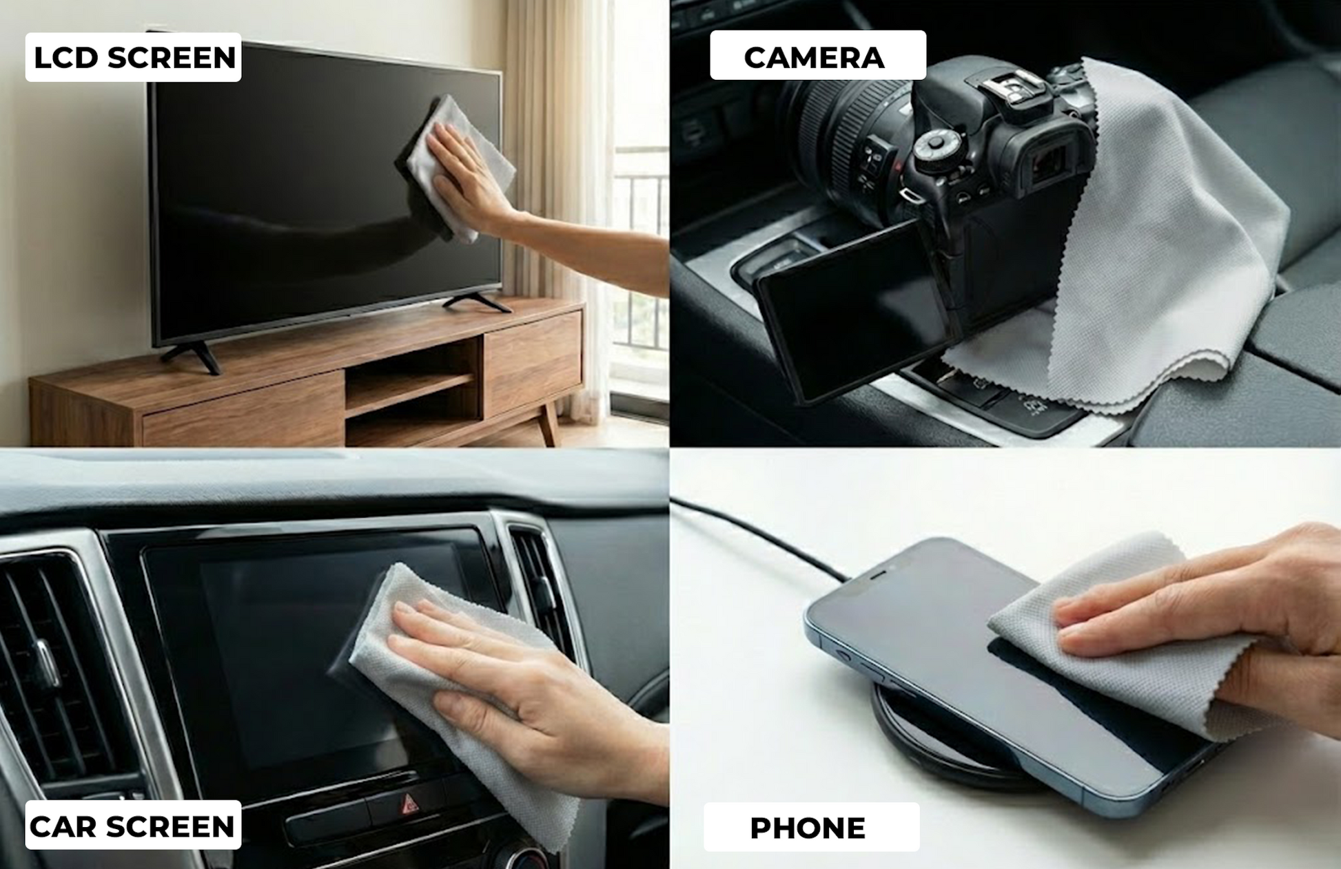Zigzag kenarları ve yoğun mikrofiber dokusu, araba iç mekanları, piyano black kaplamalar, LCD/LED TV'ler, dizüstü bilgisayarlar ve dikkatli ve özenli temizlik gerektiren ev eşyaları için mükemmeldir.