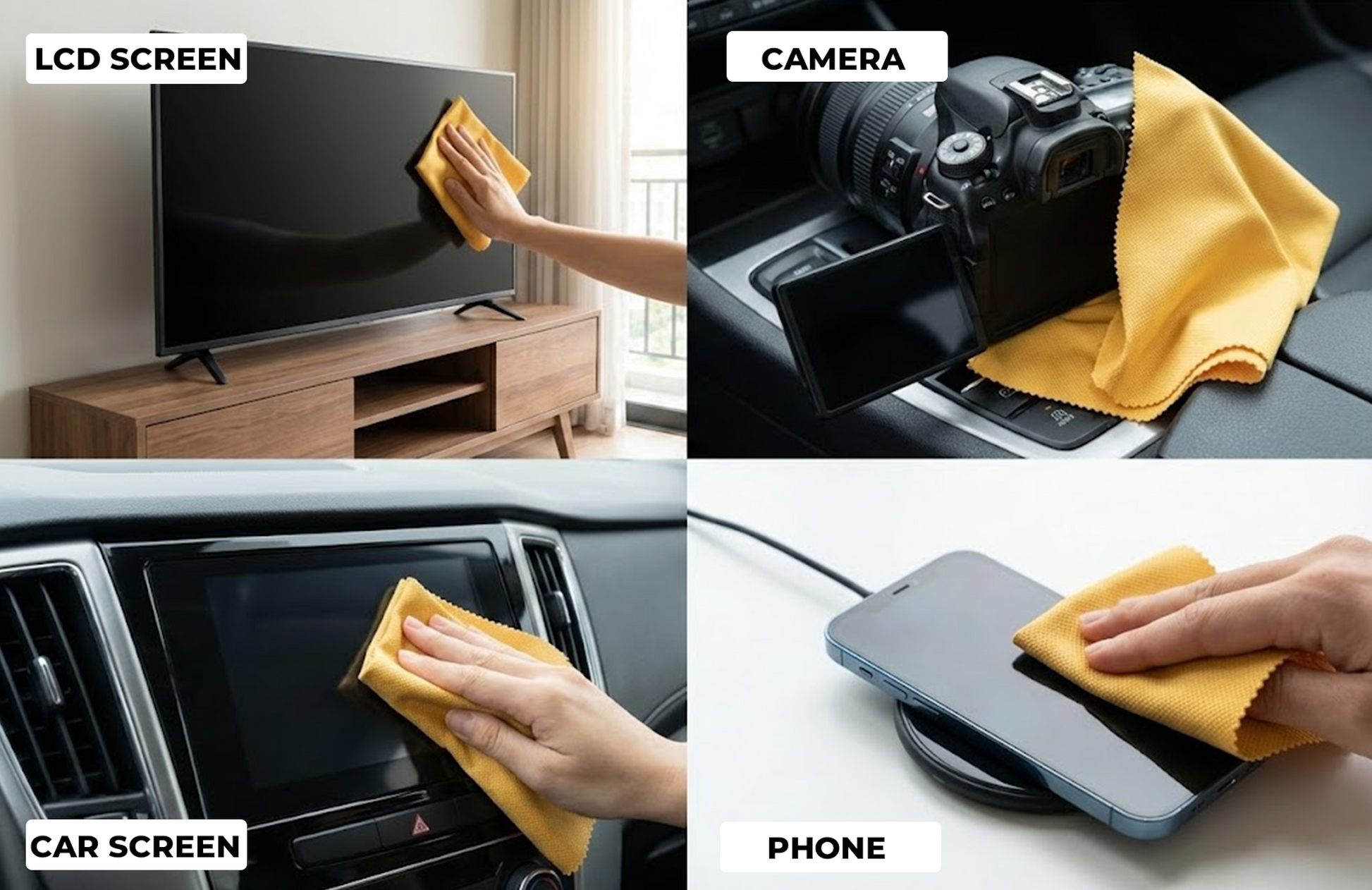 Zigzag kenarları ve yoğun mikrofiber dokusu, araba iç mekanları, piyano black kaplamalar, LCD/LED TV'ler, dizüstü bilgisayarlar ve dikkatli ve özenli temizlik gerektiren ev eşyaları için mükemmeldir.