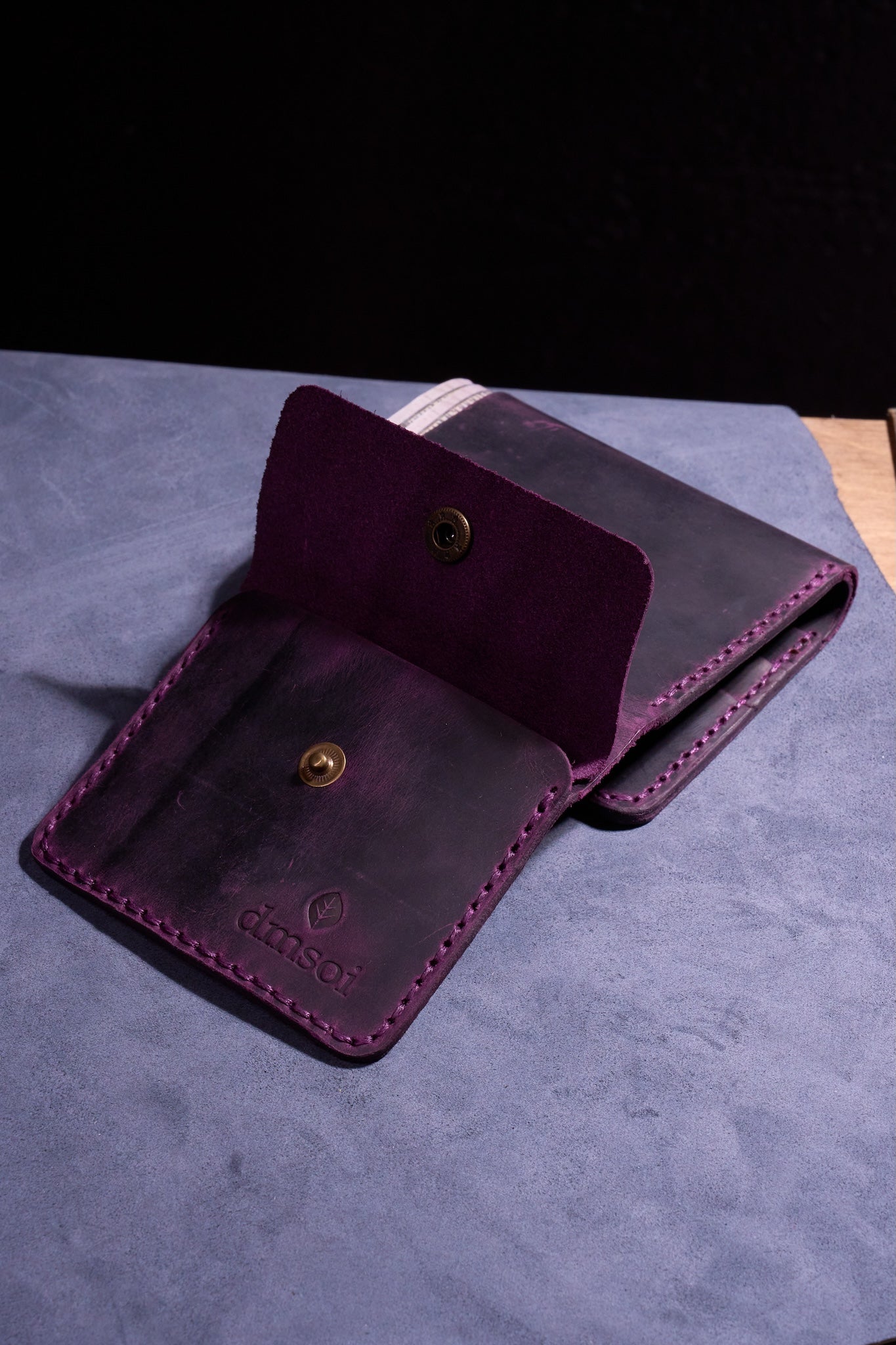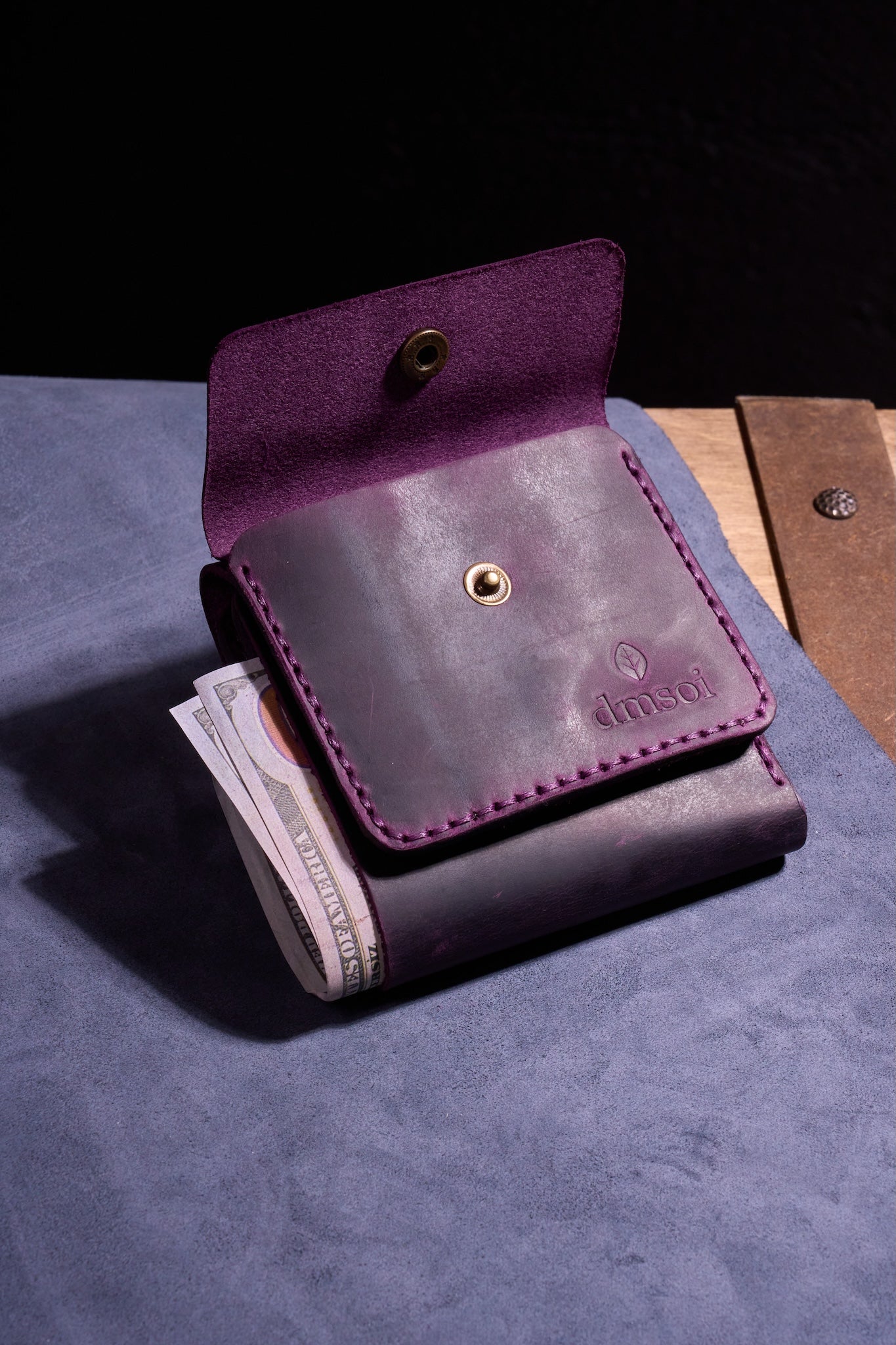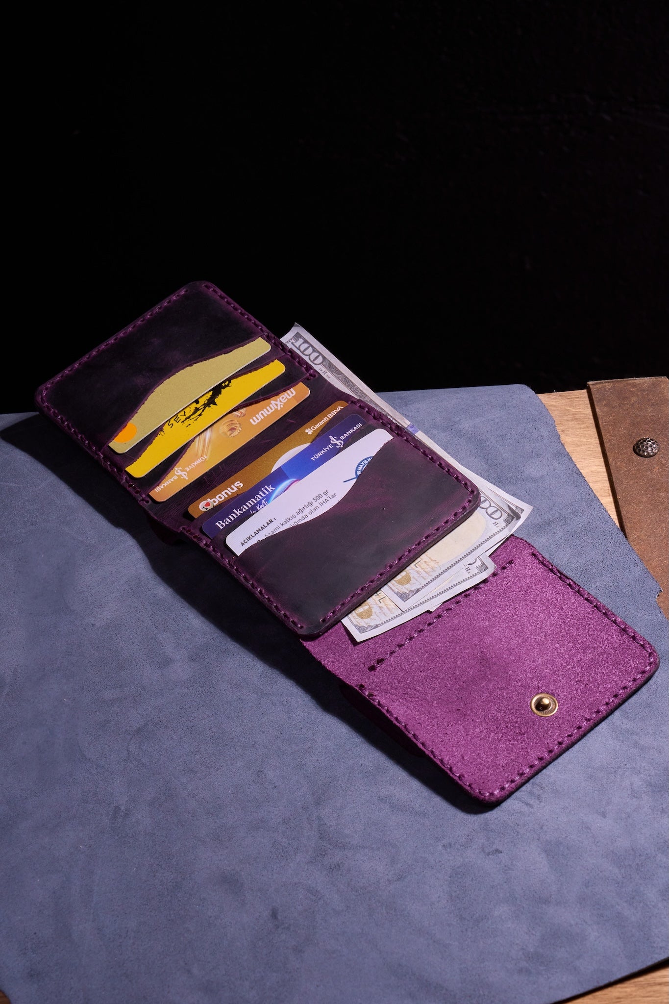 Mor El yapımı hakiki deri kadın cüzdanı. Anneler, öğrenciler, kendiniz ve sevdikleriniz için.