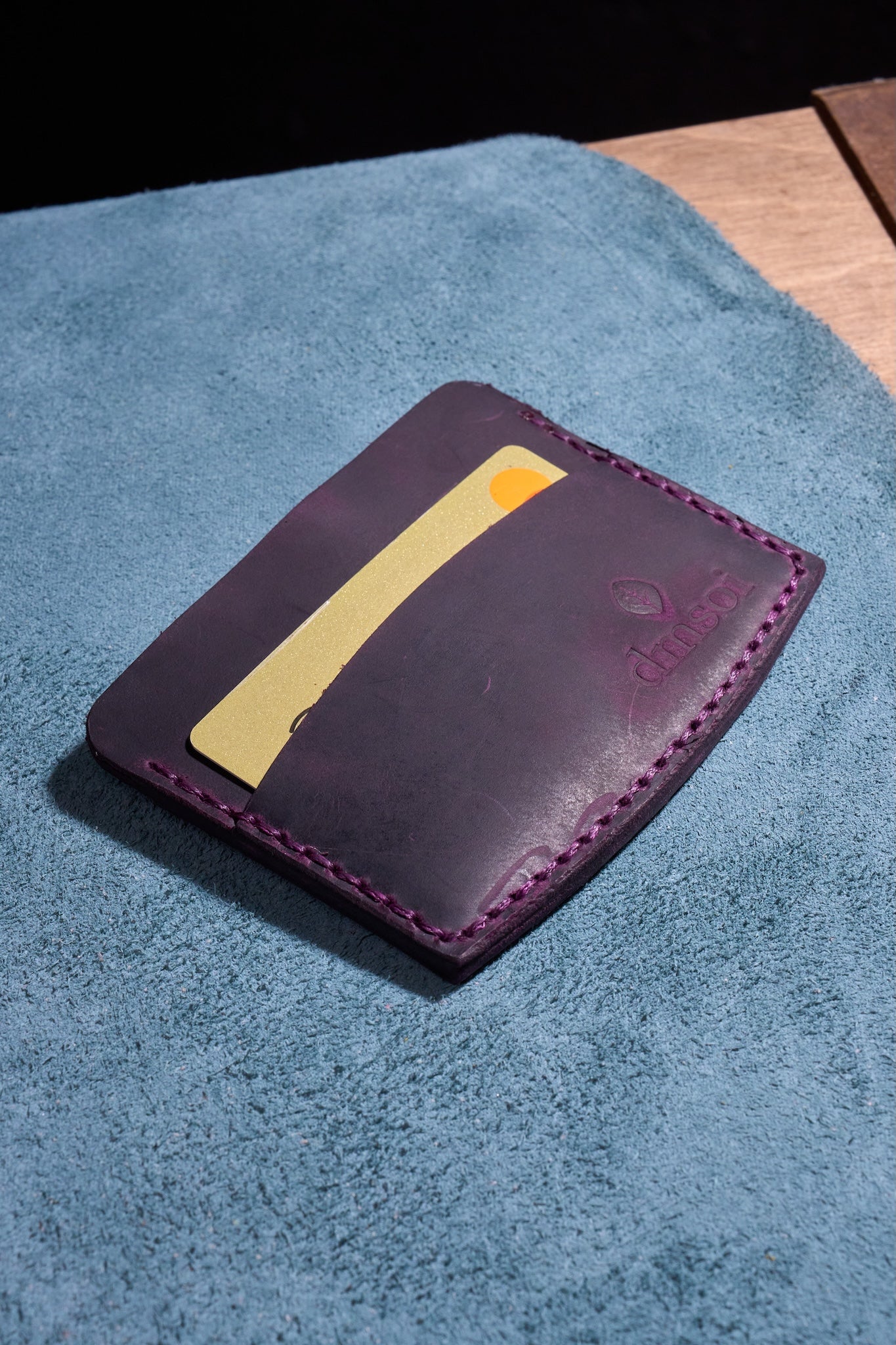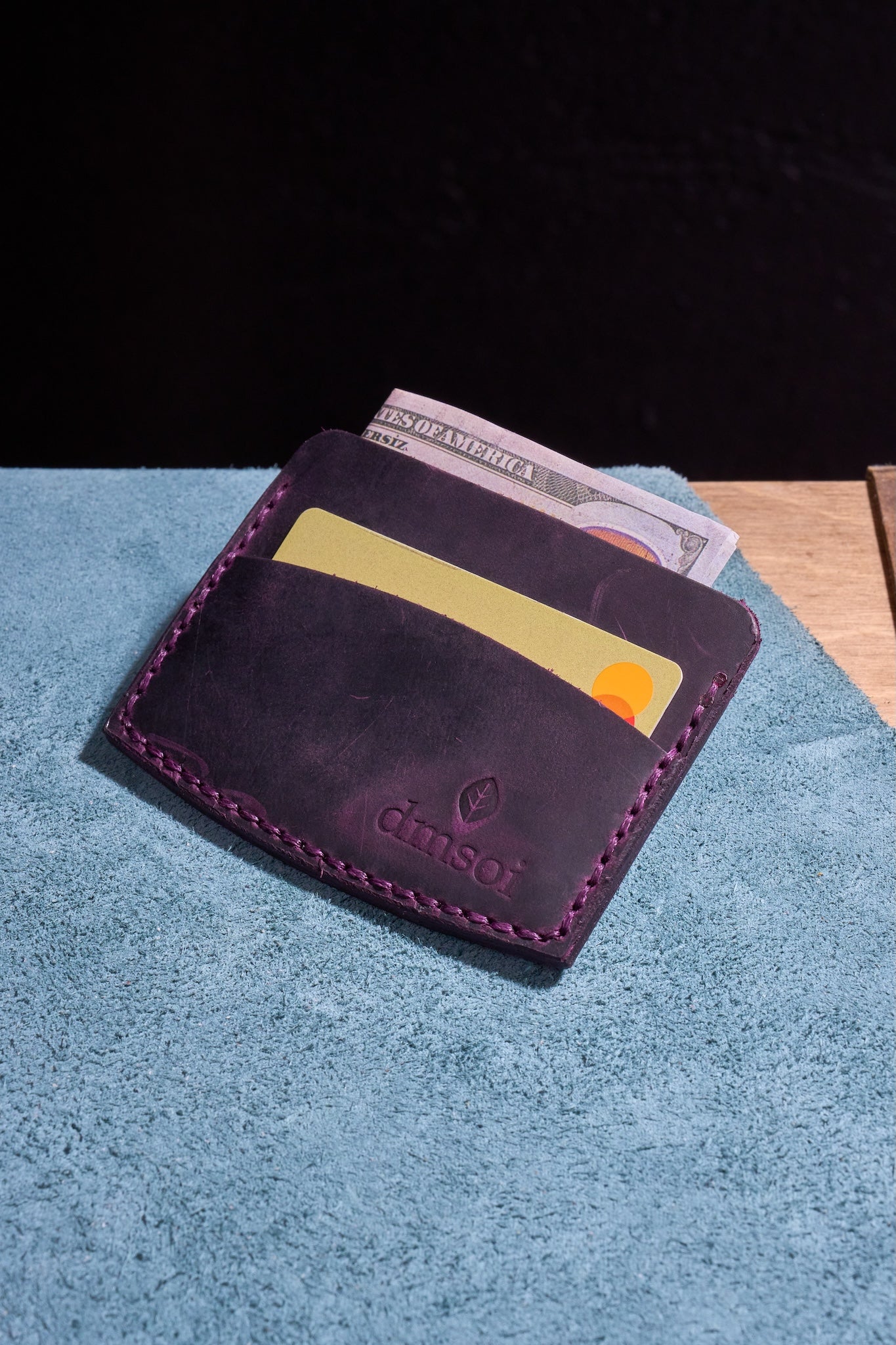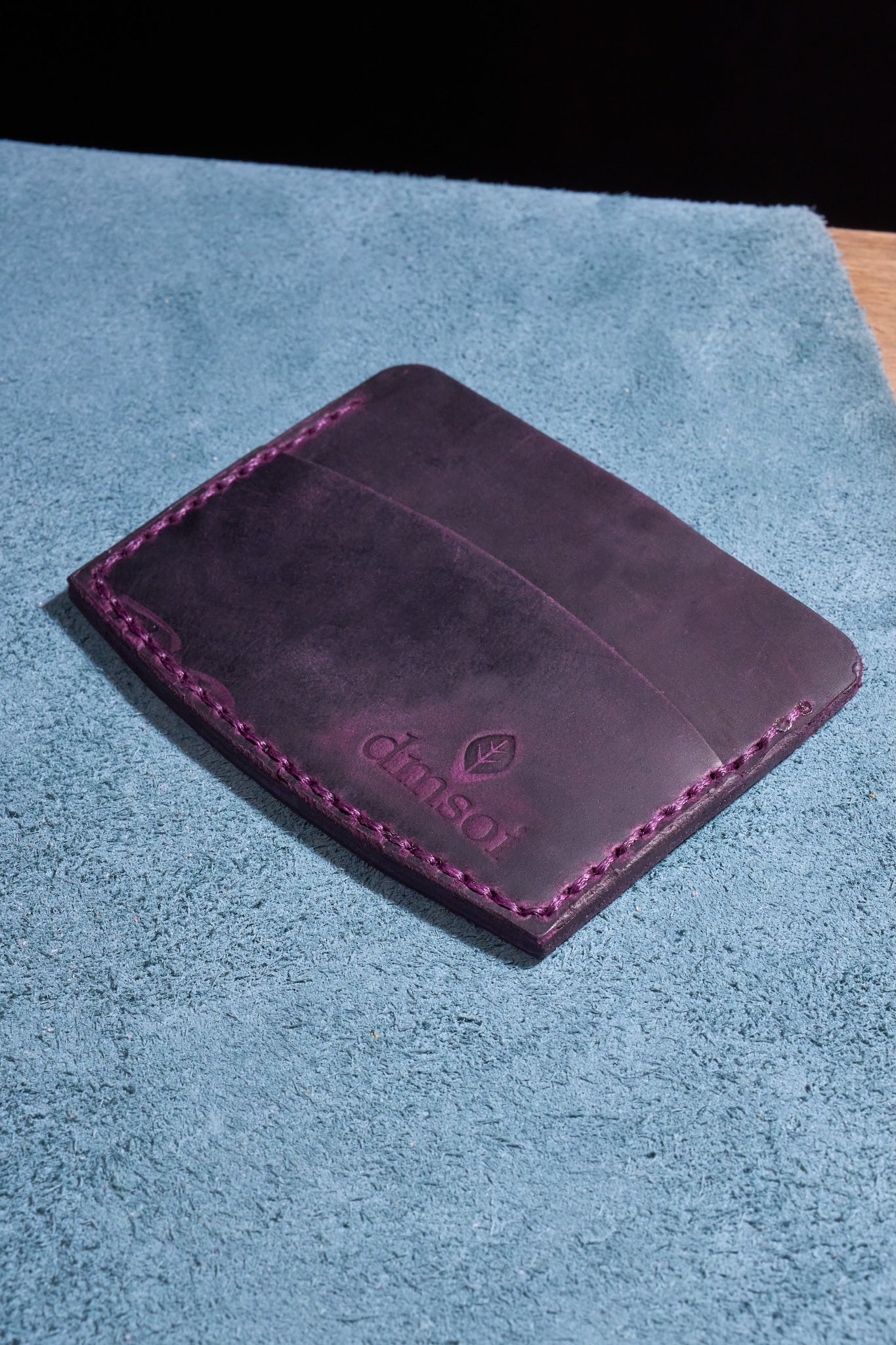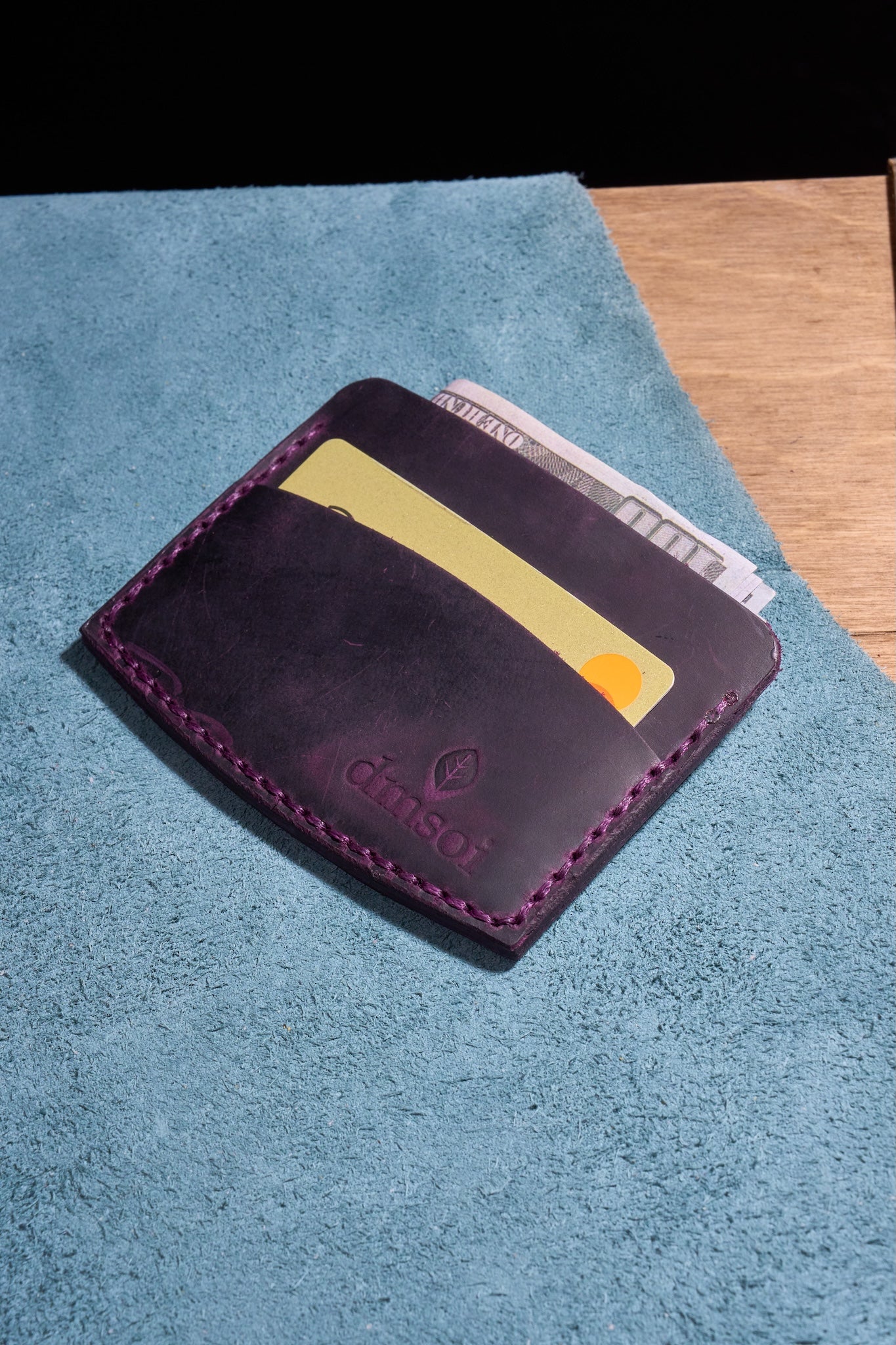 Mor El Yapımı Minimalist Deri Kartlık Cüzdan – %100 Dana Derisi – Erkekler ve Kadınlar İçin Birinci Sınıf İnce El Yapımı Cüzdan – Makine Kullanılmadan Üretilmiş El İşçiliği – Dayanıklı Günlük Kullanım Kartlığı