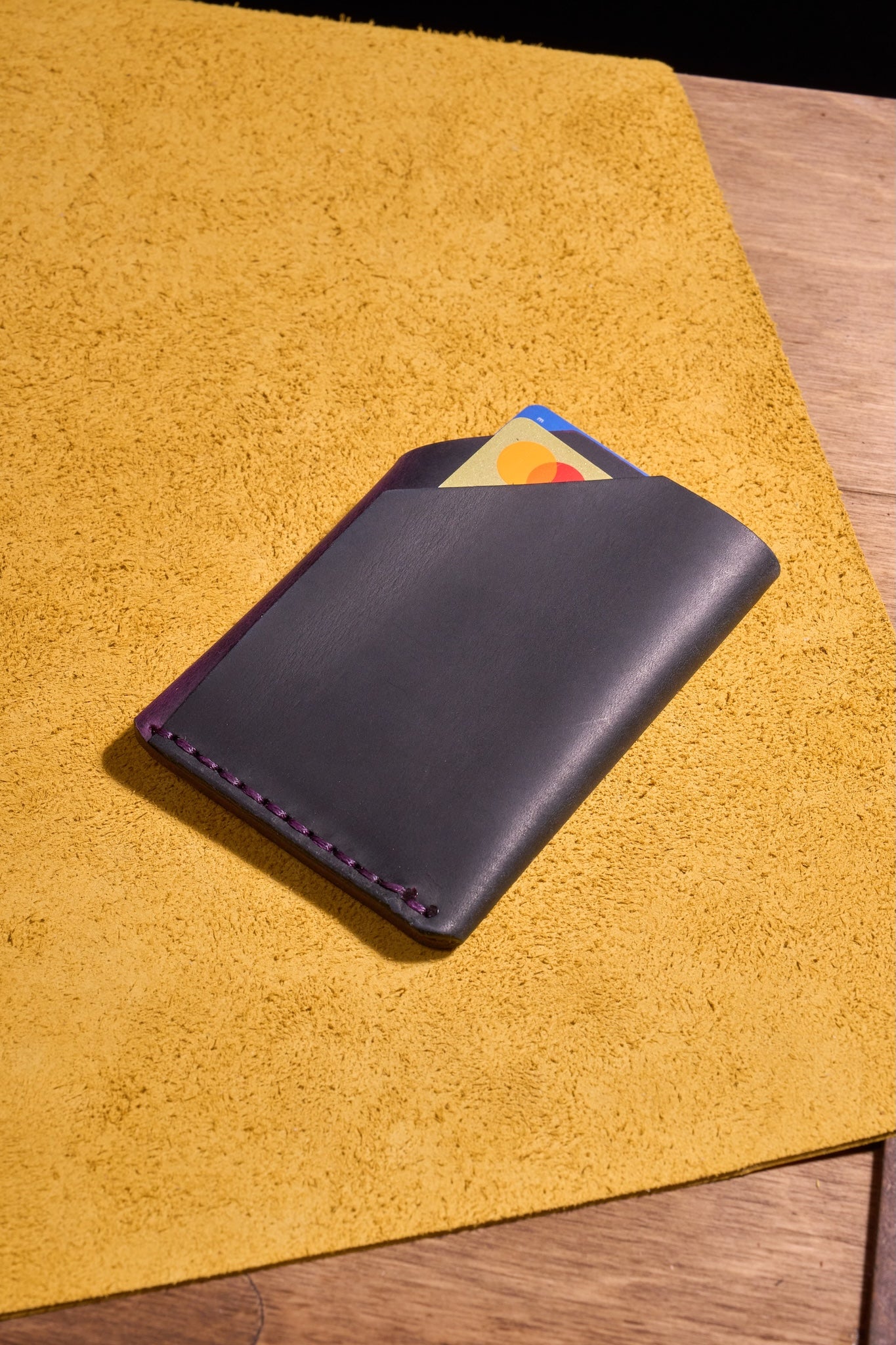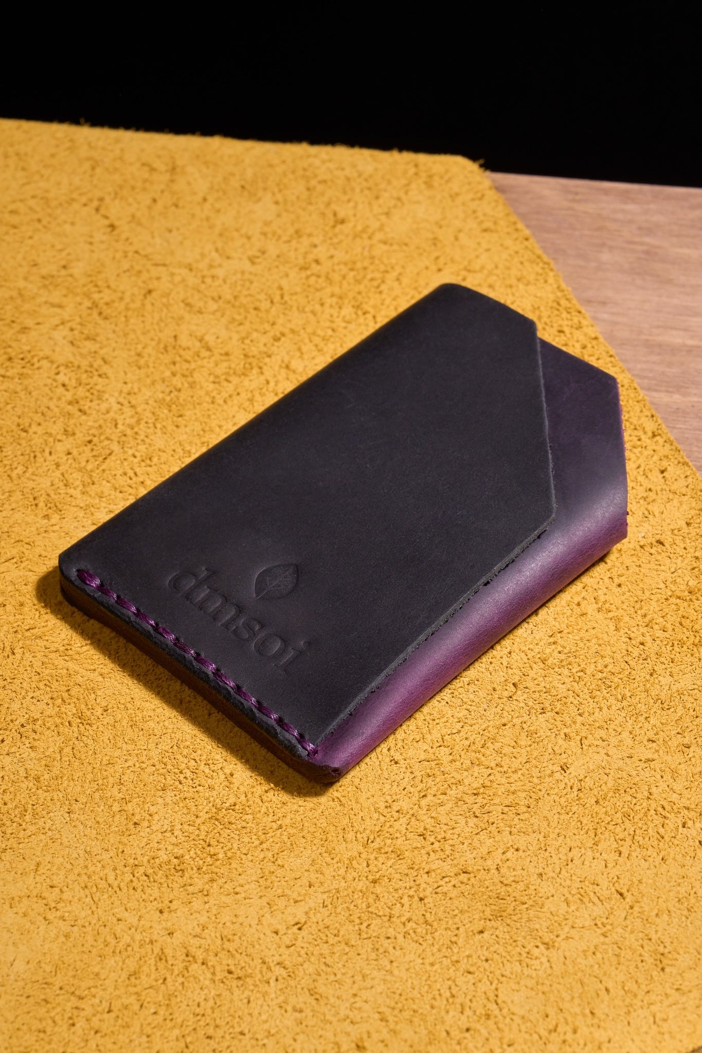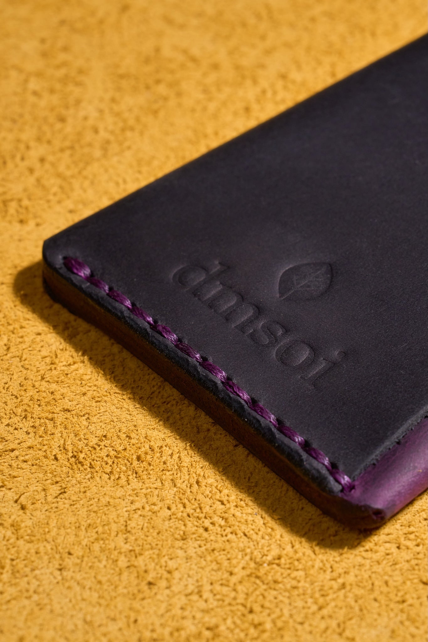 Mor Siyah - El Yapımı Minimalist Deri Kartlık – %100 Dana Derisi, Erkekler ve Kadınlar İçin Birinci Sınıf İnce El Yapımı Kartlık, Makine Kullanılmamıştır, Dayanıklı Günlük Kullanım Kartlık