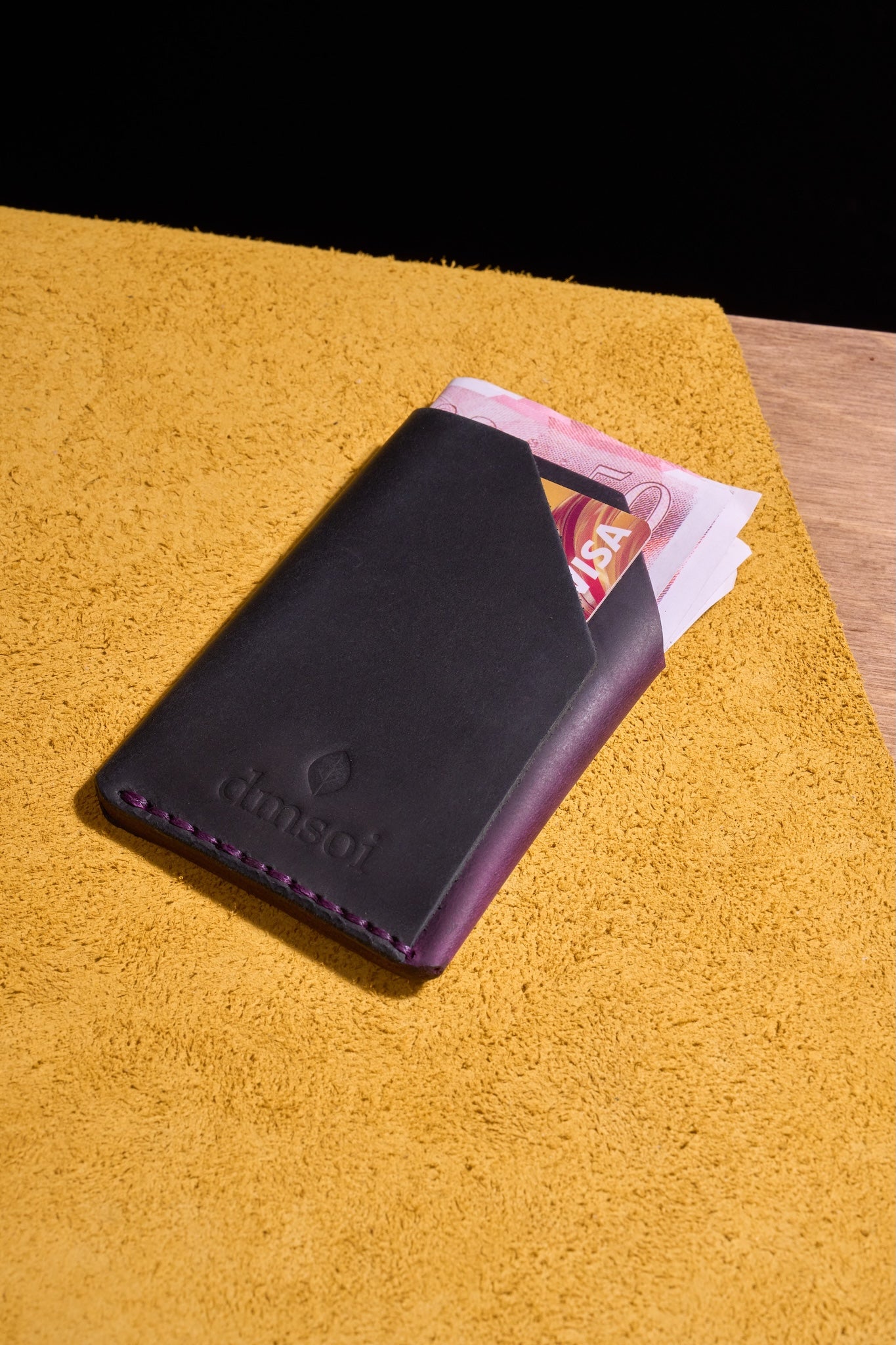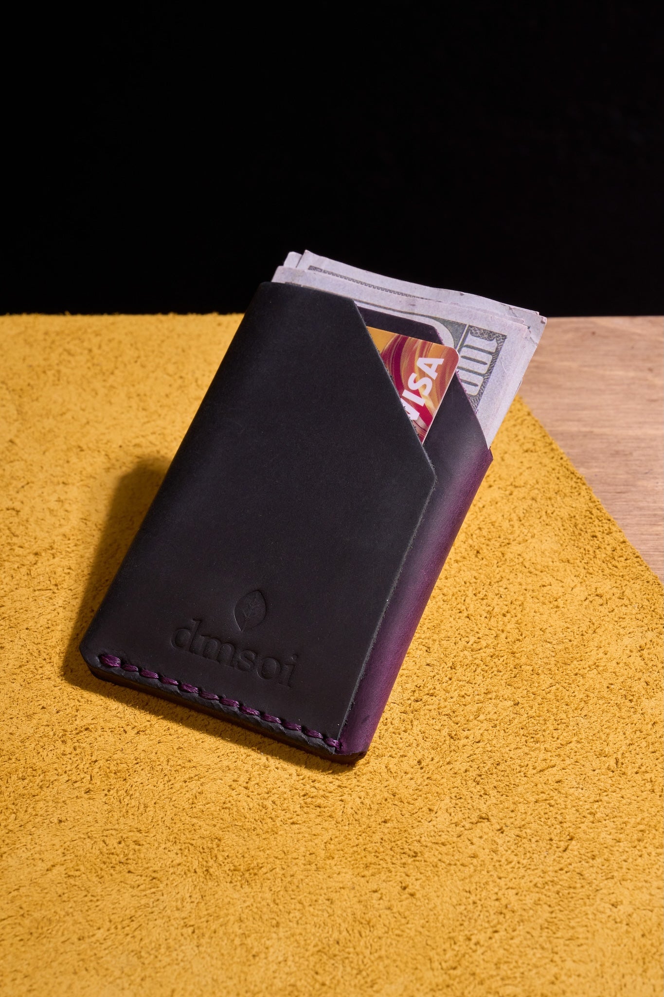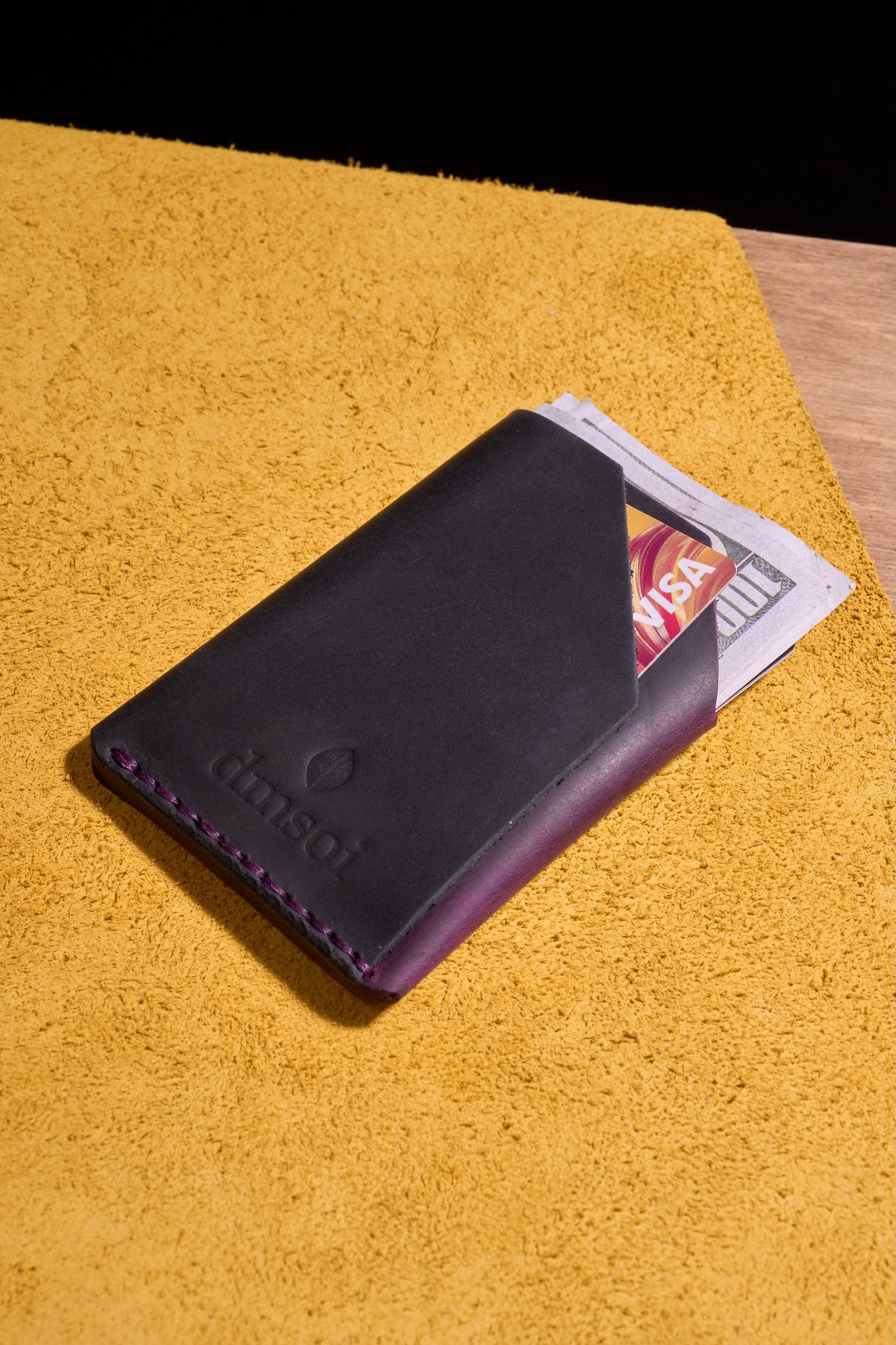 Mor Siyah - El Yapımı Minimalist Deri Kartlık – %100 Dana Derisi, Erkekler ve Kadınlar İçin Birinci Sınıf İnce El Yapımı Kartlık, Makine Kullanılmamıştır, Dayanıklı Günlük Kullanım Kartlık