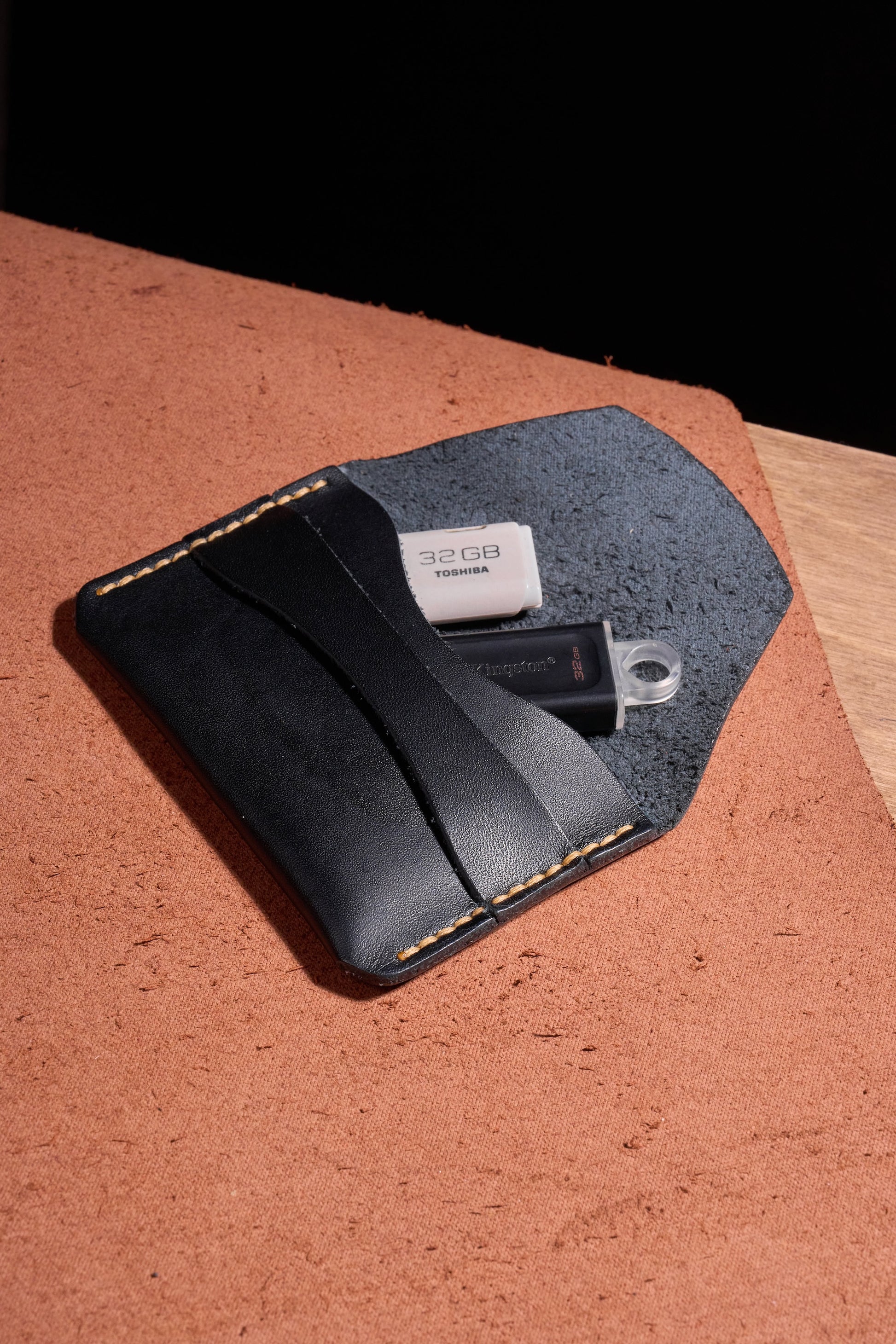 Siyah El Yapımı dana derisi çok fonksiyonlu kartlık box– Premium El Yapımı Minimalist Bozuk Para, Nakit ve Kartlar için Çok Amaçlı Ceplik. Takı, USB, SD Kartlar ve Küçük Eşyalar İçin