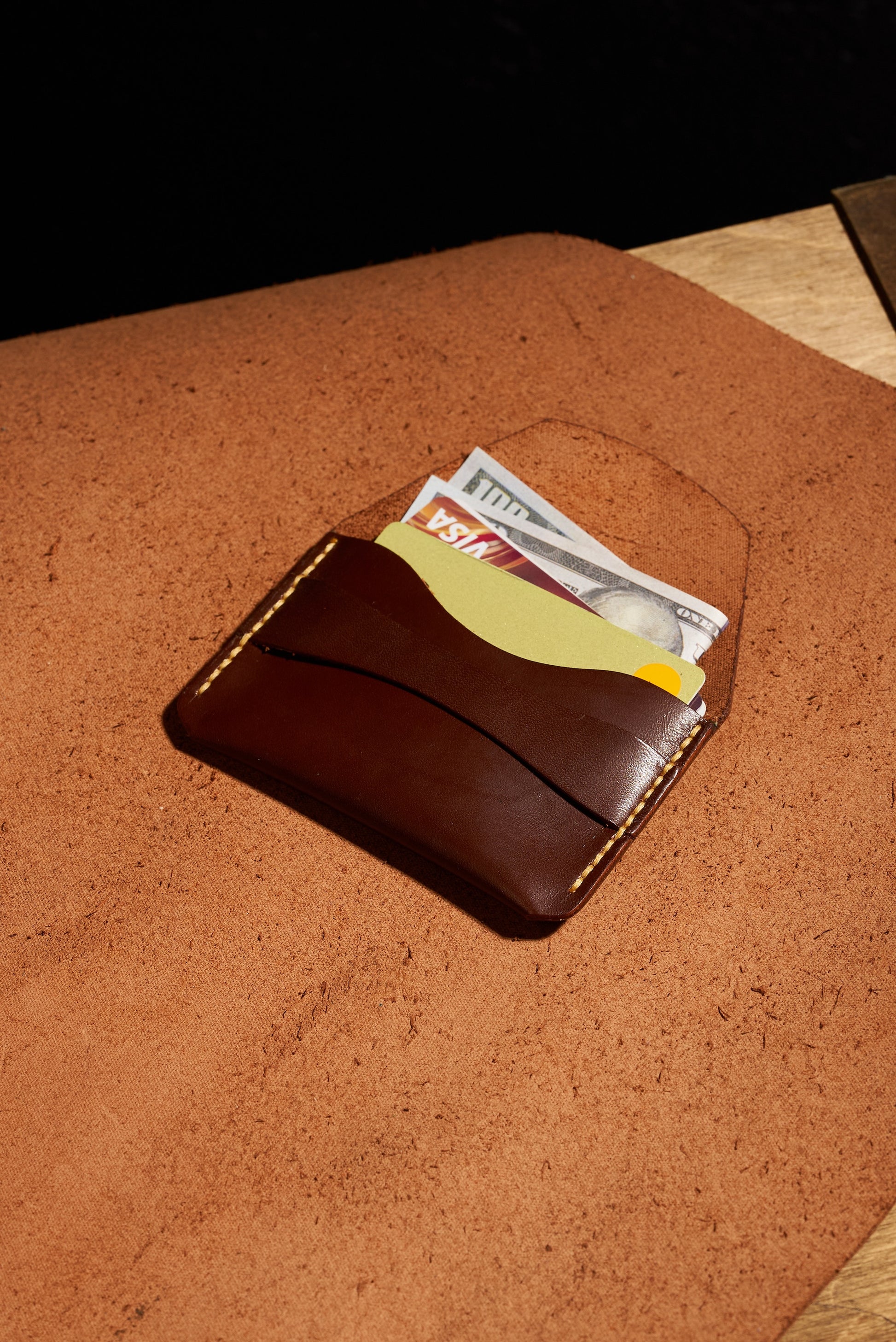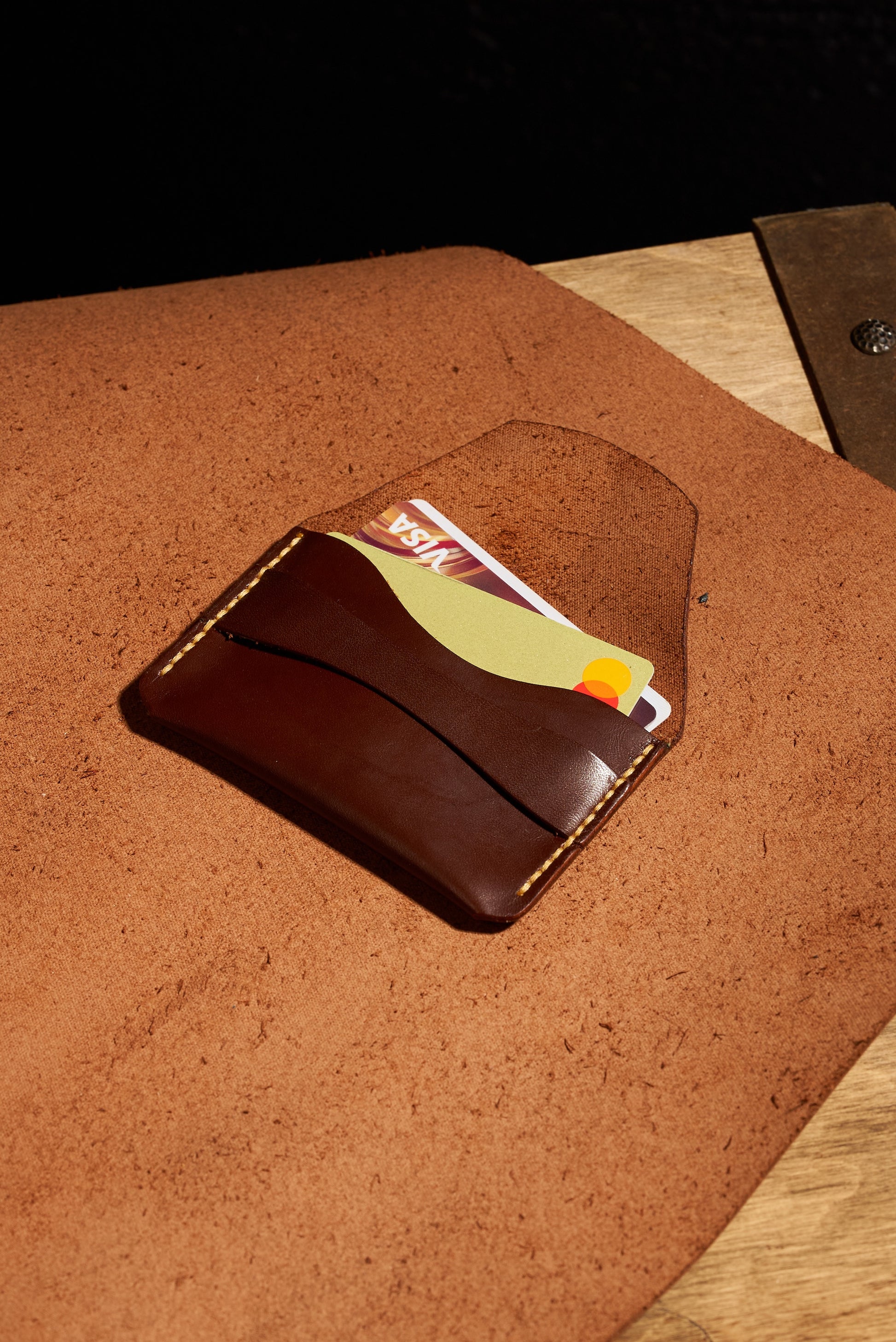 Bu kartlık tamamen el işçiliğiyle şekillendirilmiştir; her kesim ve dikiş, gerçek el sanatının sessiz inancını taşır; özgünlüğü ve dayanıklılığı için seçilen deri, yalnızca zamanın geliştirebileceği bir derinlik ve karakter kazandırır. Sadece üretilmemiş; saatlerce süren sabırlı emekle kazanılmış, elde canlılık hissi veren bir nesnedir.