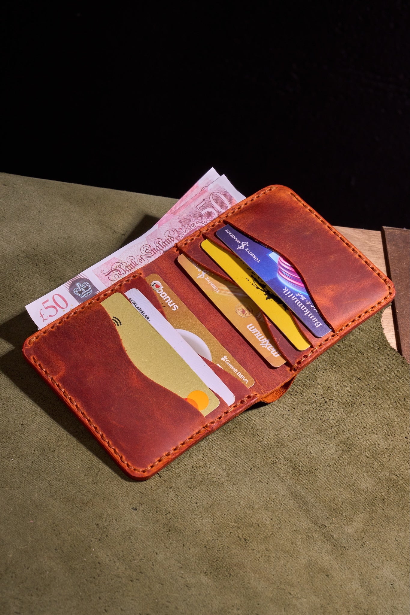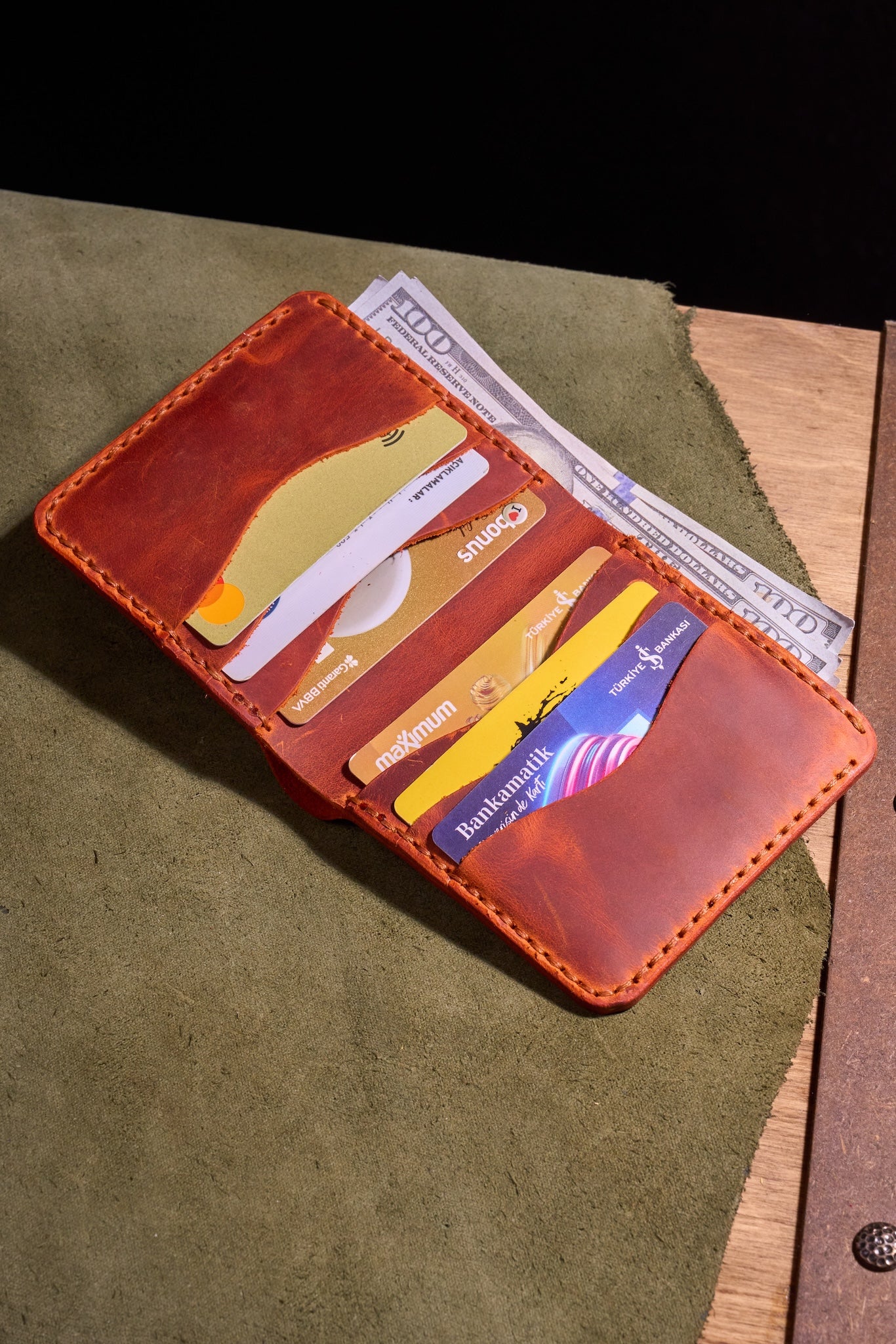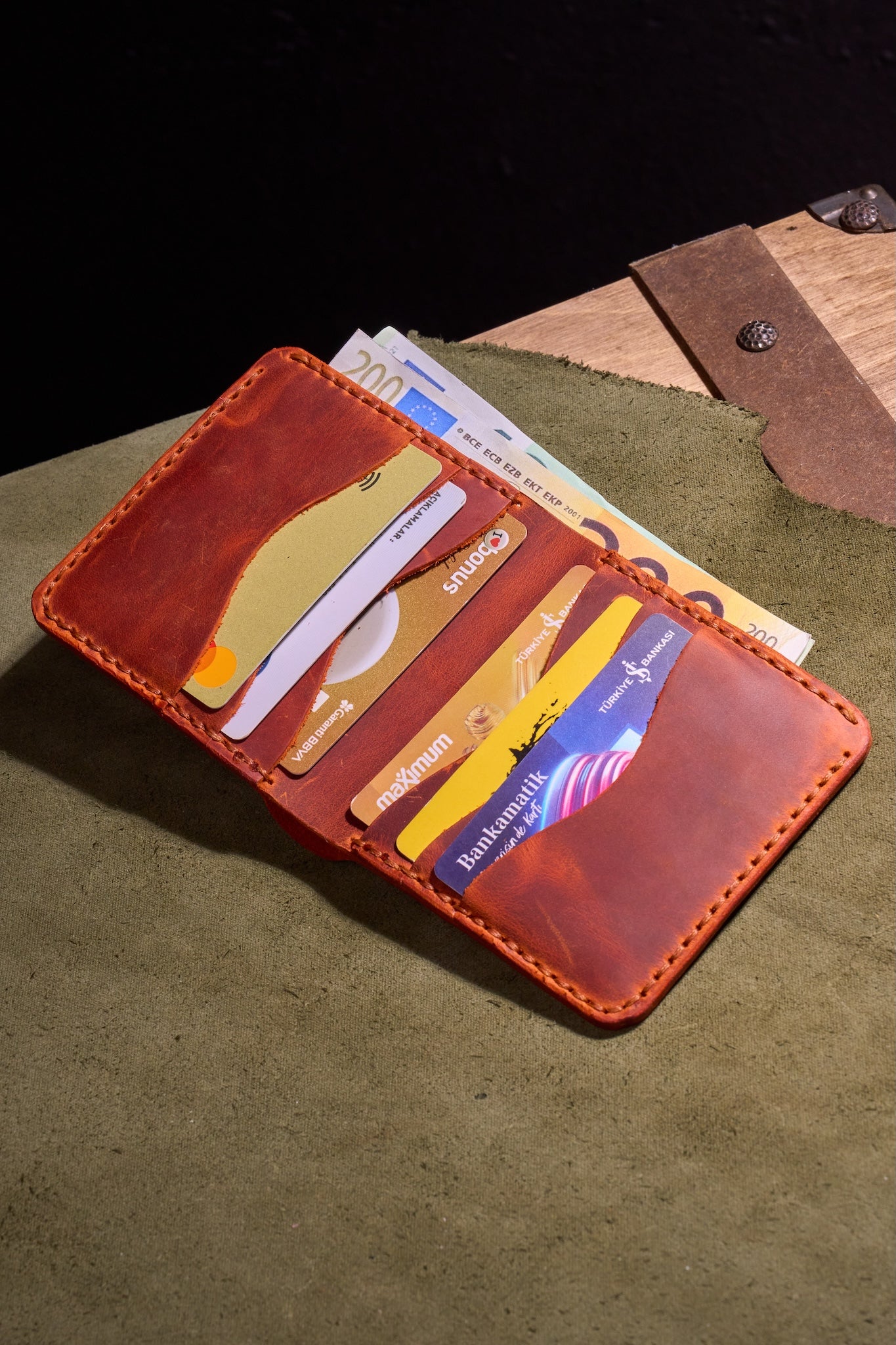Her dikiş, tek bir makine kullanılmadan elle yerleştirilir ve cüzdanı bir aksesuardan daha fazlası, çaba, disiplin ve insan dokunuşunun sessiz bir tanıklığı haline getirir.