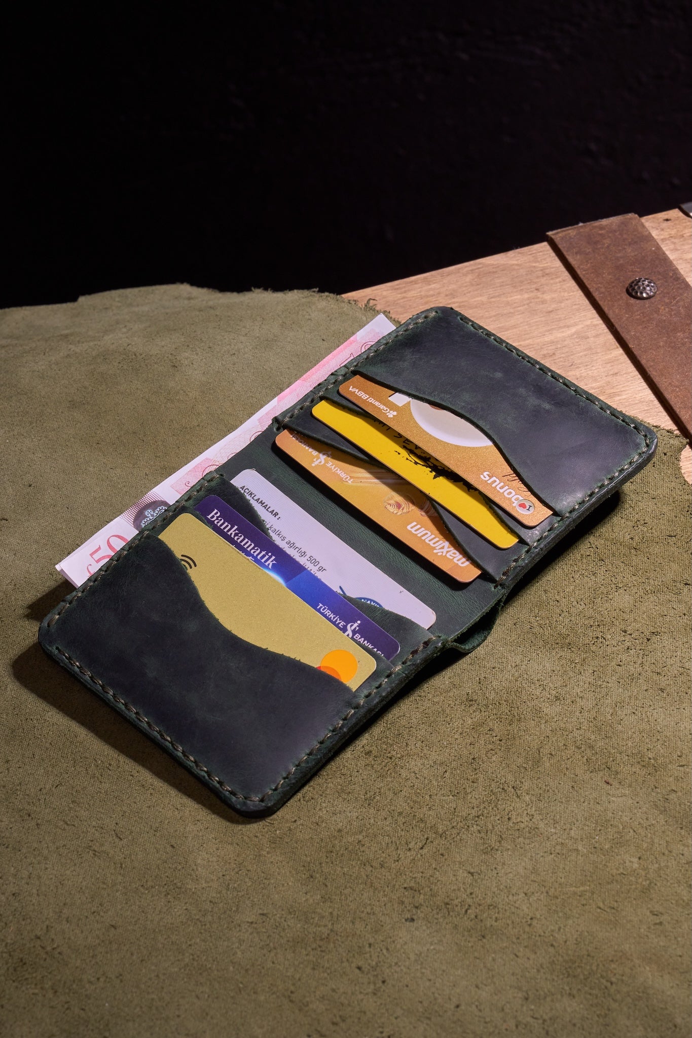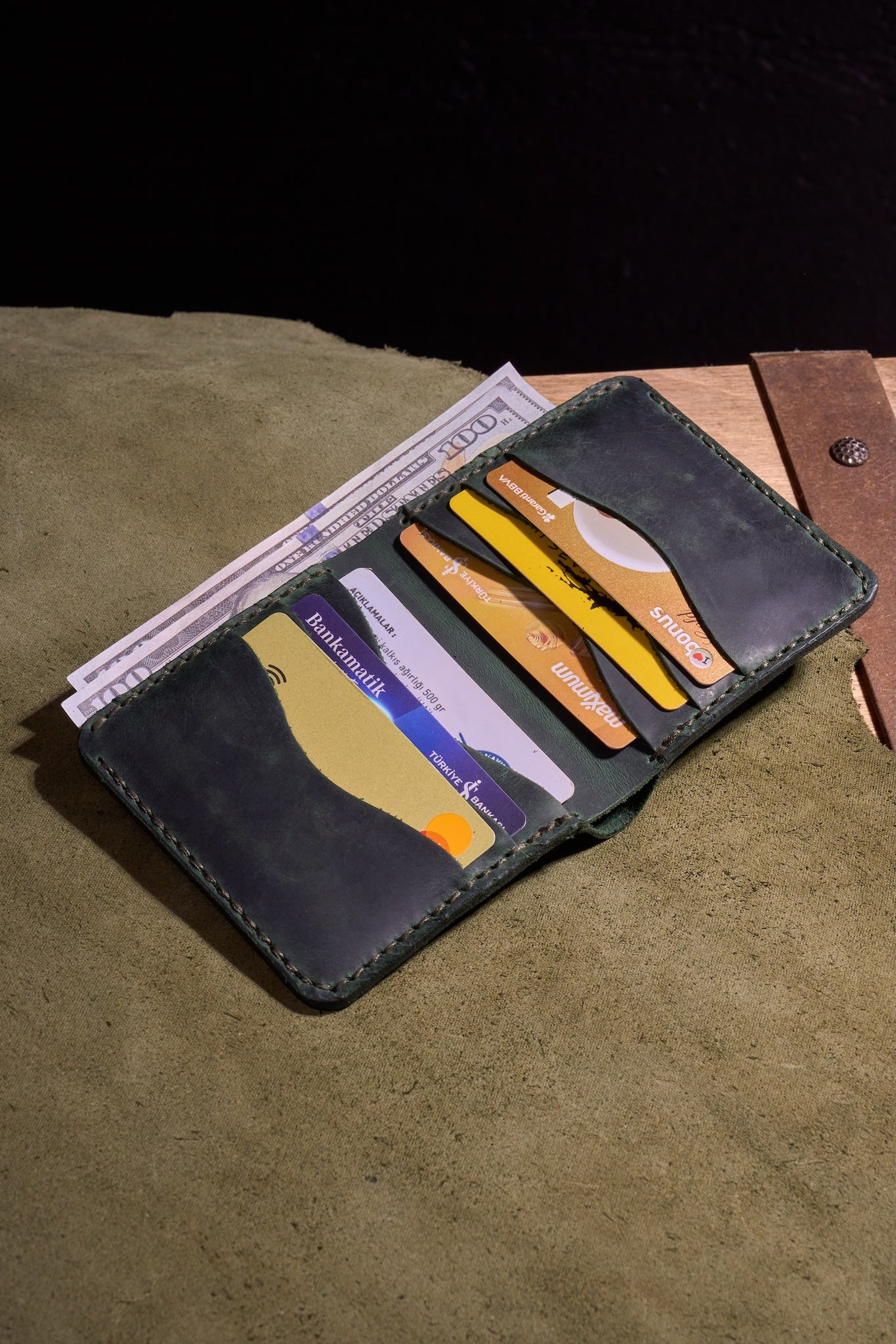 Yeşil Erkekler için El Yapımı Hakiki Dana Derisi Katlanır Cüzdan – %100 Hakiki Deri, El Dikişli, Makine Kullanılmadan Üretilmiş, Dayanıklı Kart ve Nakit Bölmesi, Birinci Sınıf Günlük Cüzdan ve Hediyelik